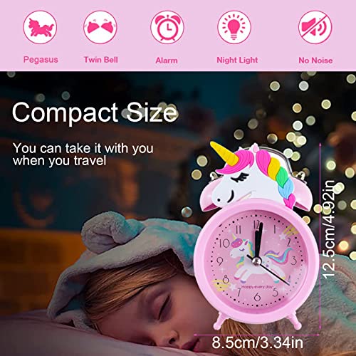 Jiuwtence Sveglia con Unicorno per Ragazze,Sveglia Silenziosa da Comodino,Funzionamento a Batteria,Sveglia per Bambini e Bambine con Classica Doppia campana,Luce Notturna e Allarme Forte
