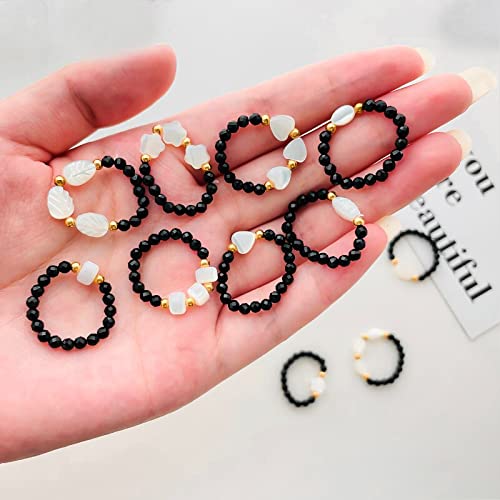 JIUXIAO Classico Nero Bianco Mini Anelli di Pietra Naturale Moda 3 mm Perline di Ossidiana Anello in Acciaio Inossidabile Fascino Pietra di Luna Accessori per Gioielli-ridimensionabile, Ametista