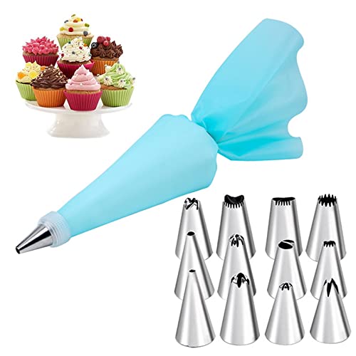 JIUYEJIU 12 Pezzi Pasticceria Accessori- Silicone Saccapoche per Dolci - Beccuccio Sacca a Poche,Miglior sac a Poche in Silicone Alimentare Extra Resistente per Decorazioni Torte Dolci(Blu)