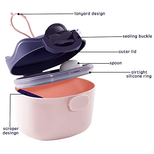 Jiuzcare Dispenser di Polvere 240g Portatile Scatola per Il Latte in Polvere per Bambini Formula Contenitore per Latte Coperchio Ermetico per Alimenti con Raschietto e Cucchiaio, Dinosauri Rosa S