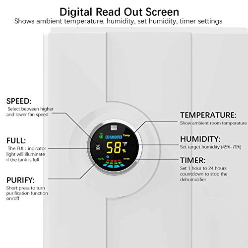 JIXIN Deumidificatore per La Casa, Deumidificatori Portatili Silenziosi da 2000 Ml (68 Once) Deumidificatore Piccolo da 323 Piedi Quadrati con Telecomando