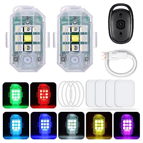 JIZZU 2Pcs Drone Strobe Light Luci Drone 7 Colori Drone LED Luci Notturne di Segnalazione di Allarme, Luce di Avvertimento Anti-collisione Luce di Avvertimento Anti-Collisione per Moto, Auto RC