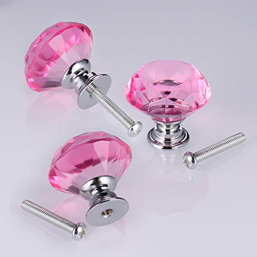 JIZZU 10 Pezzi Pomelli Cristallo Rosa per Armadi, Cassetti con Viti, Maniglie per Mobili Cristallo, Manopole a Forma Diamanti, Pomelli Vetro Cristallo Rosa Eleganti e Delicati per Cassettone.
