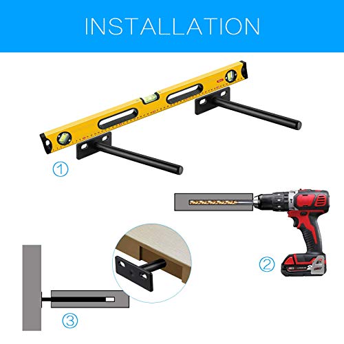 【Facile da installare】 Al fine di rendere le piccole staffe nascoste nel legno, si prega di utilizzare un router (punta da 0.5 pollici) per fare un foro con lunghezza di 5 pollici sulla scheda. Si assicura che la scheda è più spessa di 0.8 pollici. Si fissano le staffe del ripiano galleggiante con due fori per viti e fori nei ripiani galleggianti in legno, poi il ripiano viene montato a parete.