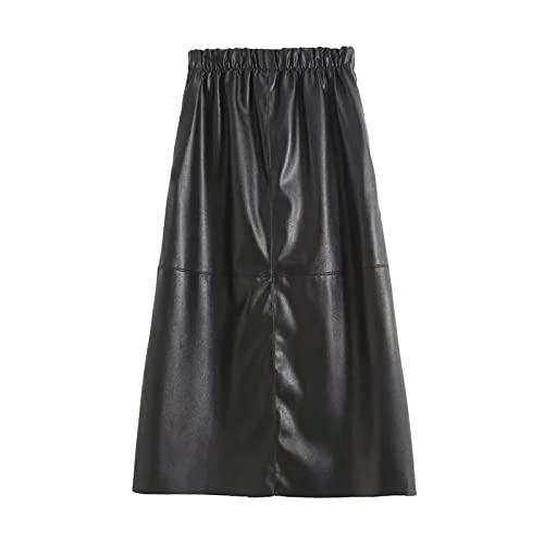 JJDSL Gonna Donna in Pelle Pu - Plus Size Tinta Unita Soffice Gonne Sciolte, Gonne in Pelle Pu Donne Vita Alta Gonne Midi Dritte, Autunno Inverno Pack Hip Plus Size Gonna A Un Passo, Nero, L