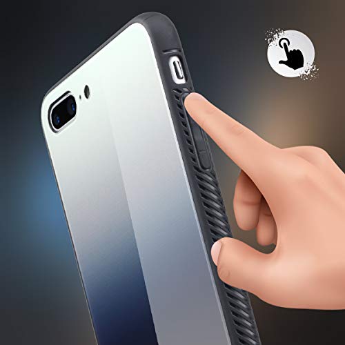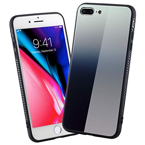 JJPRIME - Custodia Retro in Vetro Anti-Rottura Proteggi Urti in TPU colorato sfumato (iPhone 7 Plus/8 Plus, Bianco-Grigio)