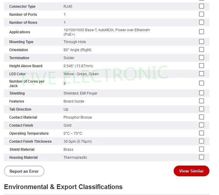 JK0-0177NL 1 Port RJ45 Magjack Connector Through Hole 10/100/1000 Base-T, AutoMDIX, Power over Ethernet+ (PoE+) JK0-0177NL