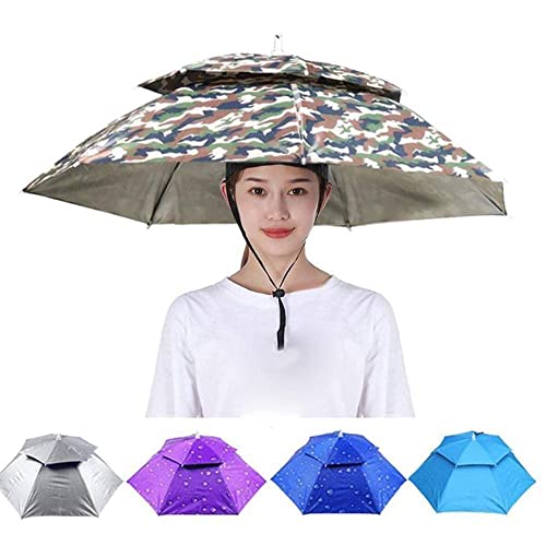 Jkapagzy Pesca Ombrello Cappello Doppio Strato - Montato Ombrello Esterno Antipioggia Pieghevole Ombrello Parasole Cappello Sopra Antivento