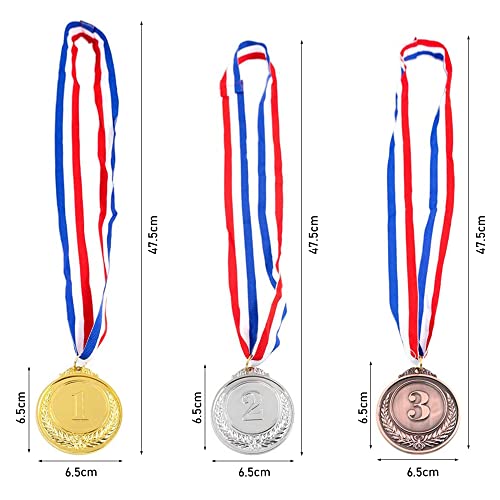 JKDHJK 6 Pezzi Medaglie Premiazioni Metallo, Olimpica Medaglie in Oro Argento Bronzo Medaglie Premio con Nastro per Feste a Scuol Bambini Festa di Compleanno premi Sport Concorso