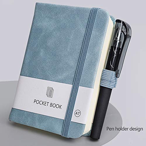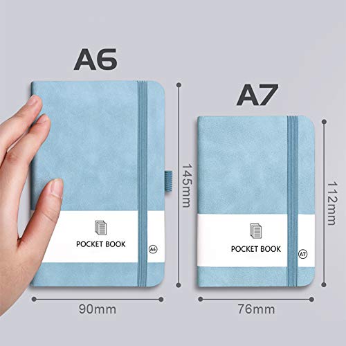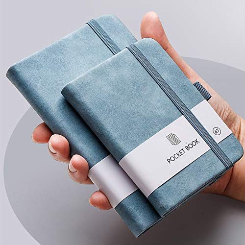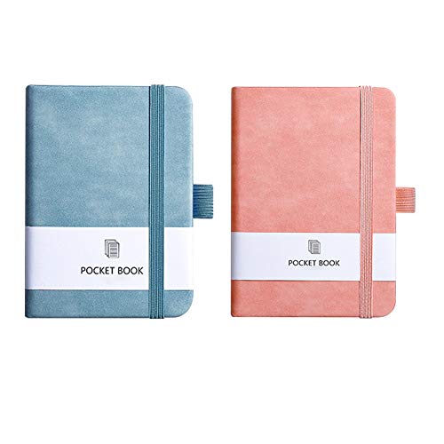 JKGHK Taccuini tascabili, Mini diario con Copertina Rigida per taccuino da 2 Pezzi, Copertina in Pelle, con portapenne,Light Blue + Pink,A7
