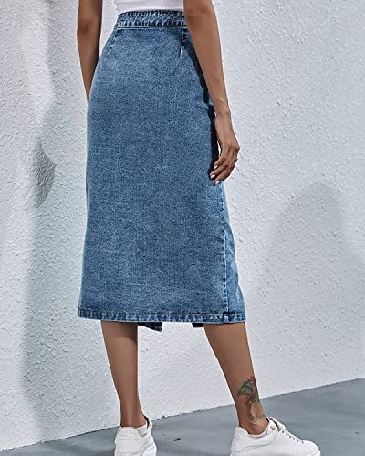 JKPCYTE Gonna Lunga da Donna in Denim Lavato con Bottoni A Vita Alta, Lunghezza Midi, Gonna A Tubino in Jeans A Linea (C,S)