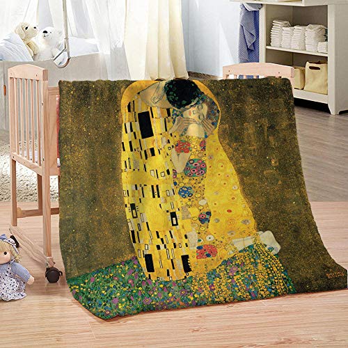 JKRFV Coperta in Pile Bacio di Klimt Coperta di Pile Sherpa Extra Morbida e Calda Plaid 3D Coperta Stampata Decorativa per Divano e Letto 180x200cm