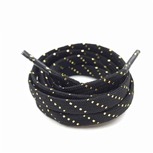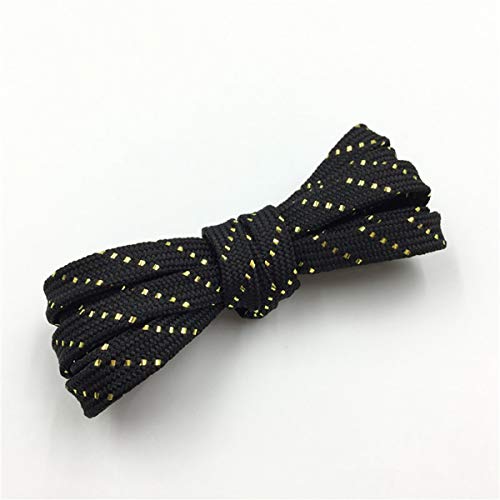 Jksdp Oro bianco Fancy Glitter Calzature nere Lacci lucido piatto unico bootlaces metalli Lacci delle scarpe della scintilla, Black Gold, 120 centimetri