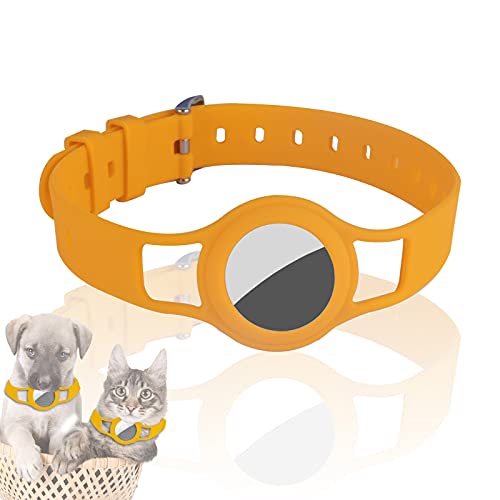 JLLTiioo Collare in Silicone per Cani e Gatti Compatibile con Apple AirTag 2021, 20-40 cm (8,2 "- 15,5") Durevole e sicuro Lunghezza regolabile, Copertura Accessori Pet Finder (Giallo)
