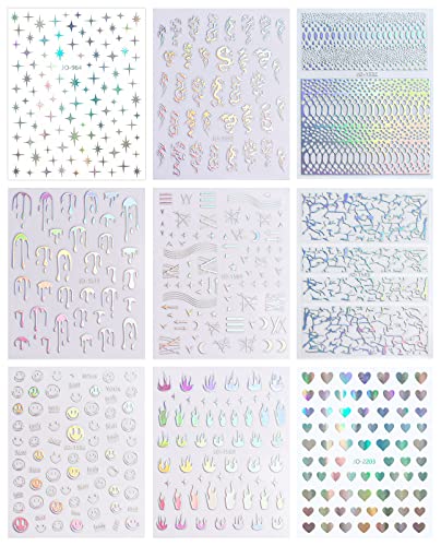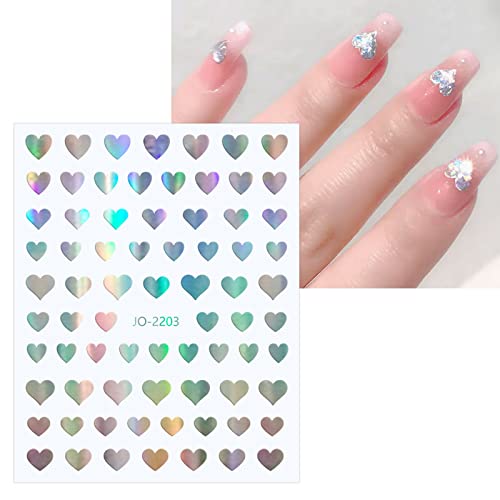 JMEOWIO Aurora Cuore Olografico Adesivi Unghie Nail Art 9 Fogli Stickers Unghie Autoadesivi Decorazioni Unghie Nail Art Disegni