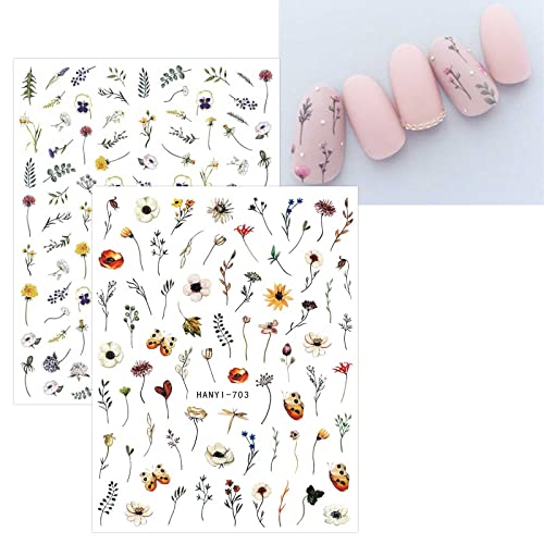 JMEOWIO Fiore Primaverile Adesivi Unghie Nail Art 9 Fogli Stickers Unghie Autoadesivi Decorazioni Unghie Nail Art Disegni