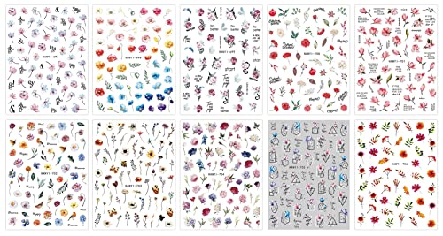 JMEOWIO Fiore Primaverile Adesivi Unghie Nail Art 10 Fogli Stickers Unghie Autoadesivi Decorazioni Unghie Nail Art Disegni