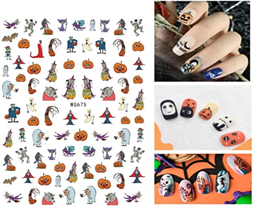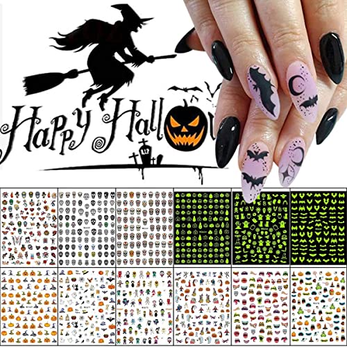 JMEOWIO Halloween Adesivi Unghie Nail Art 12 Fogli Stickers Unghie Autoadesivi Decorazioni Unghie Nail Art Disegni