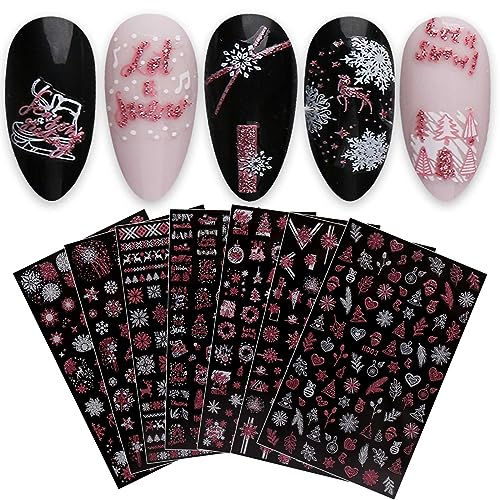 JMEOWIO Natale Glitter Adesivi Unghie Nail Art 8 Fogli Stickers Unghie Autoadesivi Decorazioni Unghie Nail Art Disegni