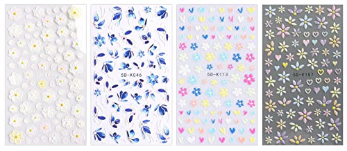 JMEOWIO 3D Primaverile Fiore Adesivi Unghie Nail Art, Stickers Unghie Autoadesivi 5D Decorazioni Unghie Nail Art Disegni 4 Fogli