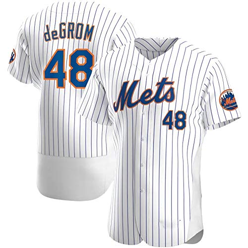 JMING Divisa Da Baseball Da Uomo Metropolis Team # 48 De GROM, Maglietta Da Baseball Elite Da Uomo A Maniche Corte Uniforme Da Squadra Con Bottoni Felpa Con Cappuccio (M,B)