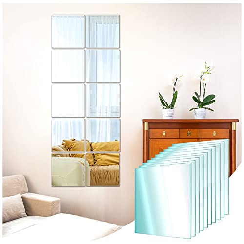 JMITHA Specchi Adesivi da Parete Piastrelle a Specchio Bicchiere Adesivi da parete Decorazione Murale, Camper lo Specchio Murale Decorazioni per Interni Vetro Specchi (10 Pezzi, 15cm, Bordo Squadrato)