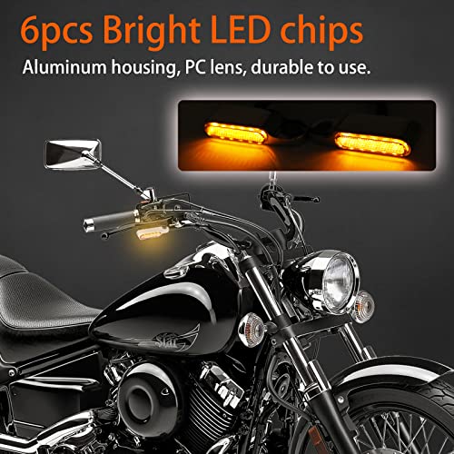 JMTBNO Cromo Frecce LED Moto Manubrio Omologate Indicatori di Direzione Piccole Sequenziali Mini Frecce Alluminio Luce Ambra Impermeabile 12V Universali M8 per Cruiser Chopper Bobber Scooter Quad