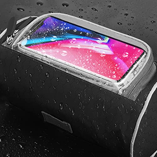 【Design touch screen】 Borsa per manubrio da bicicletta presenta una finestra TPU trasparente sensibile nella parte superiore, funzionamento ad alta sensibilità e la dimensione di 16,5 * 7,5 cm è compatibile con la maggior parte dei telefoni cellulari, la finestra trasparente semplifica la navigazione o la conversazione.