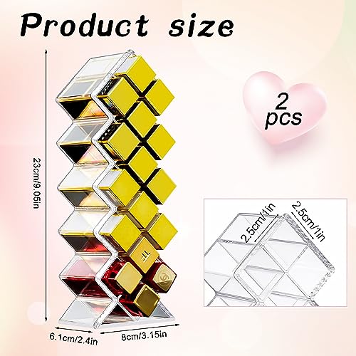 Contenuto della confezione: riceverete 2 supporti per rossetti, questo scaffale per labbra ha una capacità di 16 griglie ciascuna, la dimensione è di 23 × 8 × 6,1 cm e la dimensione del singolo scomparto è di 2,5 × 2,5 × 6,1 cm. Ogni fessura è abbastanza grande per contenere tutti i tipi di rossetti.