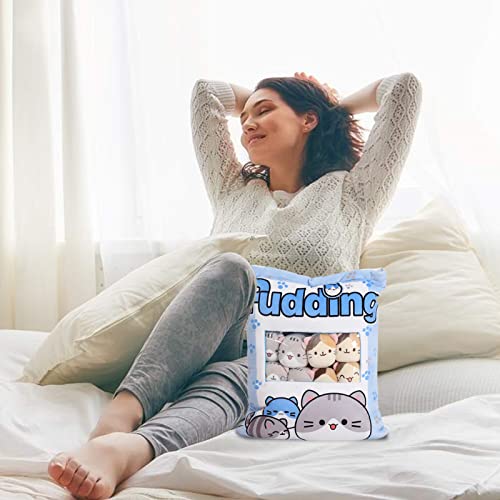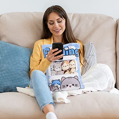 Gatti carini in un cuscino: questo giocattolo per cuscino snack è un giocattolo per i bambini e la casa che ha un cuscino con 8 simpatici peluche all'interno. È un giocattolo che i bambini adoreranno giocare con i gatti dolci e affascinanti. È anche un giocattolo che renderà la tua casa comoda e carina, perché puoi posizionare la borsa per cuscino e gatti sul tuo divano, sul letto o in qualsiasi altro luogo.