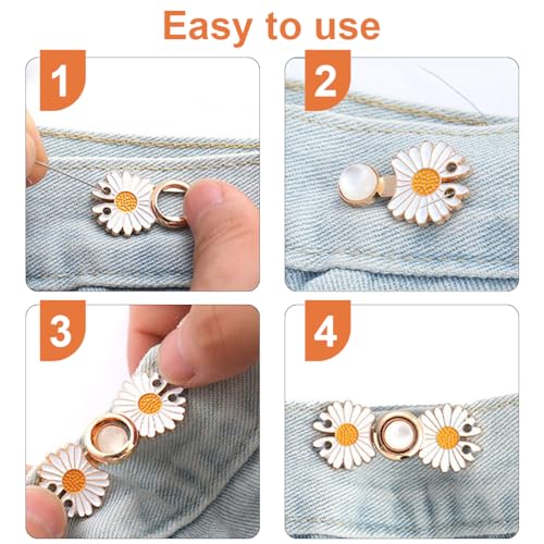 【Stringere la vita】Utilizza le nostre spille per bottoni riutilizzabili con perla per una vestibilità perfetta ogni volta. Non avrai più bisogno di tirarti costantemente i pantaloni o di sentirti a disagio perché i tuoi vestiti sono troppo larghi. Questi bottoni dei pantaloni non solo stringono la vita, ma aggiungono anche stile al tuo outfit.