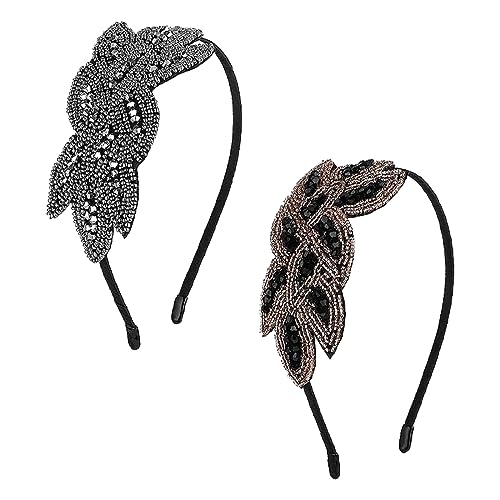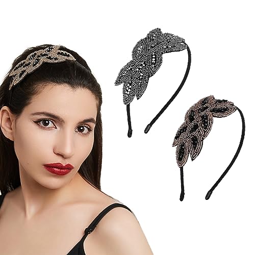 JOCXZI 2Pcs Fasce per Capelli Fasce per Capelli da Donna Accessori per Capelli Anni '20 Oro Strass Nero Argento Cristallo Sposa Spille da Sposa Pizzo Copricapo Gioielli Pezzi Perline Clip Art Deco
