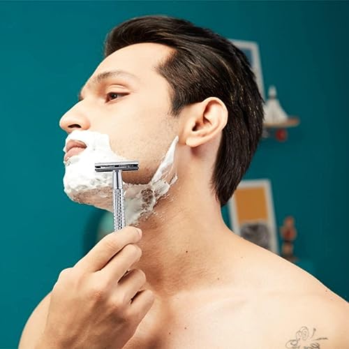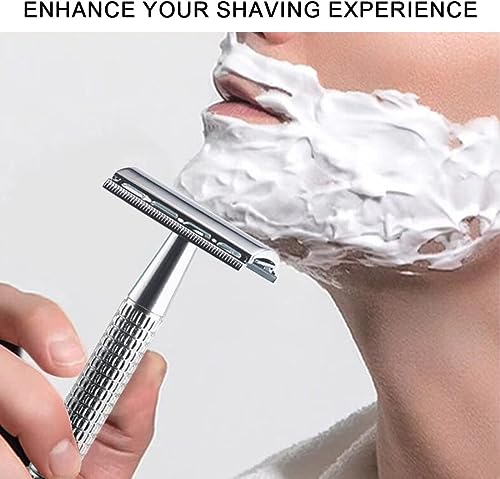 【OTTIMI RISULTATI】 Adatto a tutte le lame di rasoio a doppio taglio, rendendolo un rasoio manuale durevole ed economico, tutto ciò che devi fare è sostituire e riciclare le lame del rasoio, i nostri rasoi tradizionali offrono la migliore rasatura pulita rispetto ai rasoi elettrici o ai rasoi