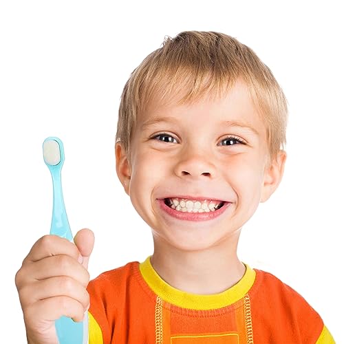 QUALITÀ PREMIUM: il nostro spazzolino da denti per bambini è realizzato in morbido pile di velluto di alta qualità con 10.000 setole. La sua consistenza morbida unica pulisce delicatamente le gengive sensibili dei bambini. Non solo questo spazzolino è adatto ai bambini da 1 a 12 anni, ma è perfetto anche per gli adulti con denti sensibili.