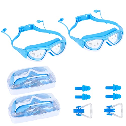 Jodsen 2 Pack of Occhialini da Nuoto, Occhialini per Bambini Antiappannamento Occhiali Nuoto con Tappi per Le Orecchie, Clip per Naso,Anti-UV Occhialini Ampia Visione per Ragazzo,Ragazza