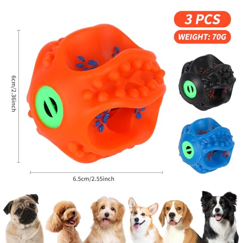 Jodsen 3Pz palline giocattolo per cani con suono, palline interattive cigolanti per cani di piccola e media taglia, giocattoli di gomma rimbalzanti da masticare, palline da addestramento per cuccioli