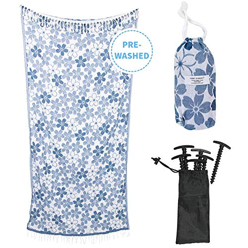JOEBY SHERFEY Telo Spiaggia Turco, Borsa Viaggio e Picchetti per Sabbia - Asciugamani Peshtemal Hammam per Piscina, Terme, Nautica, Picnic, Vacanze - Stragrande, Sottile, Morbido, Asciugatura Rapida