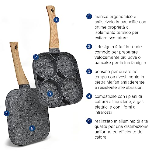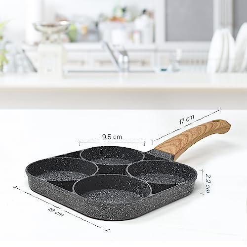 Design pratico - Padella pancake antiaderente ad alta efficienza energetica per uova e toast per colazione. La pancake padella a 4 fori per frittelle permette di cucinare più porzioni insieme rendendo più veloce preparare i pasti per la famiglia.