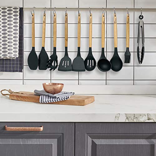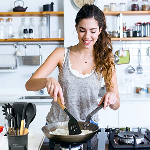 Joejis Set di 25 Utensili Cucina Set Utensili Cucina in Silicone Grigio Resistenti al Calore Utensili Cucina Silicone con Manico in Legno