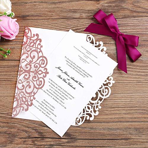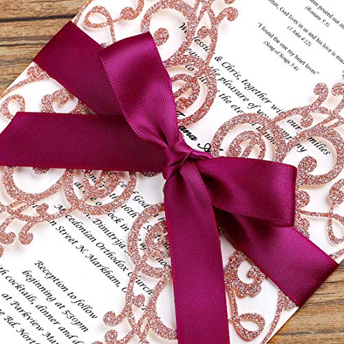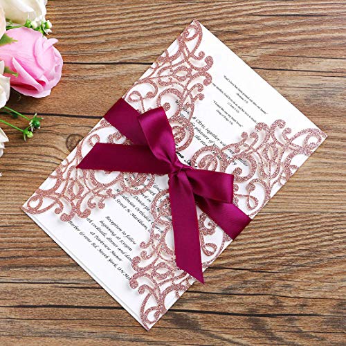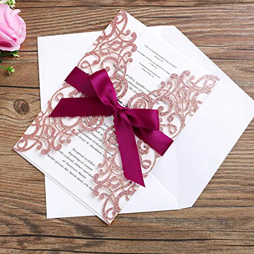 JOFANZA Rose Glitter Laser Cut Invito a nozze Carte 50 Conte con nastro di Borgogna e Buste per Quinceanera Fidanzamento Compleanno Nuziale Doccia