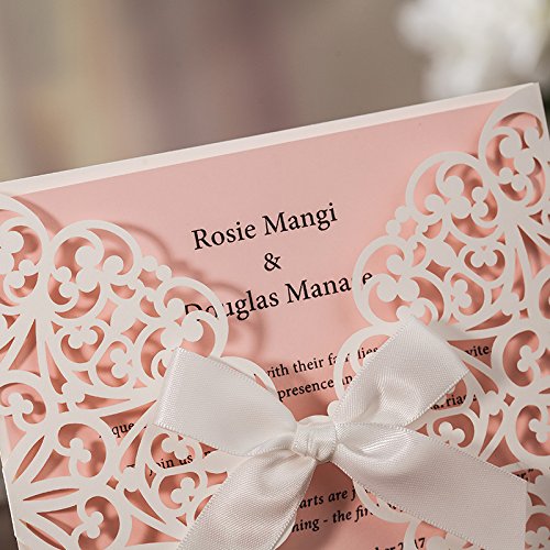 JOFANZA 20X Inviti di nozze Taglio a Laser a Quadrato Bianco Carte con Manica in Pizzo Inclusi Adesivo e Buste