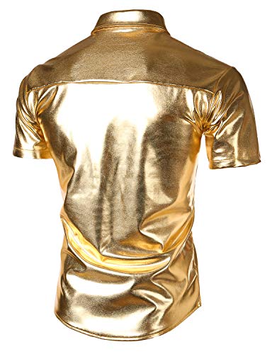 JOGAL Camicia da uomo metallizzata lucida bronzo notte club Party gold M