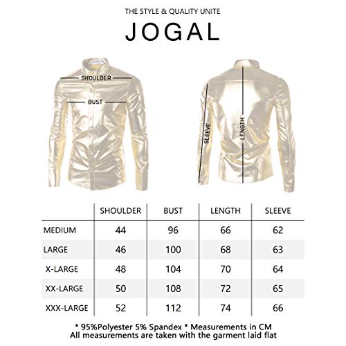 JOGAL Mens Metallic Shiny Nightclub Stili Maniche Lunghe Button Down Abito Camicie, Oro, M