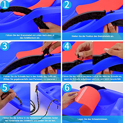 JOGIR Slitta da neve per bambini, slittino in plastica, con tappetino per spugna, manico del freno, corda per bambini, slitta da sci, slitta per bambini, ragazzi, unisex, colori blu