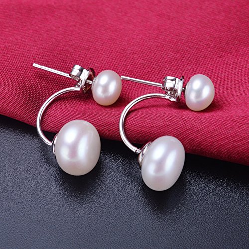 Kim Johanson, orecchini da donna con doppia perla "July” in argento Sterling 925 con perle d'acqua dolce, in confezione regalo 1 Sacchetto per gioielli