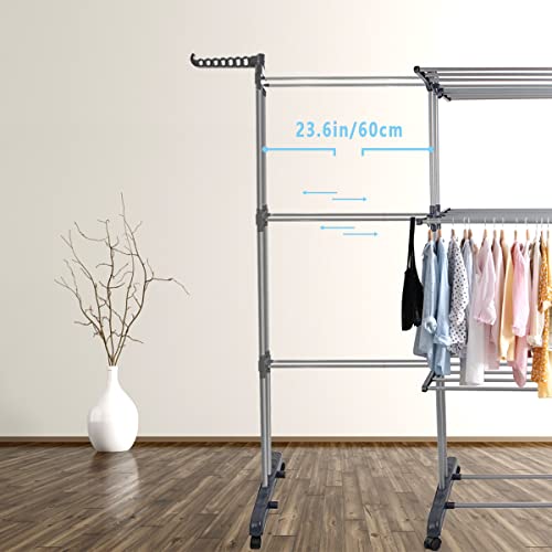 Johgee Stendibiancheria, Stendino da Balcone, Stendini, Stendino Allungabile, Dimensioni Ampliate 178 x 170 x 50 cm, con 6 Ruote Frenanti Che Ruotano a 360 gradi