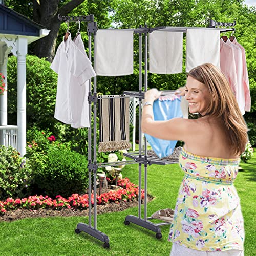 Stendino - Facile da spostare, con 6 ruote a 360°, tutte con freno. Può essere utilizzato per appendere vestiti, asciugamani, biancheria da letto, ecc. Adatto per uso interno o esterno.