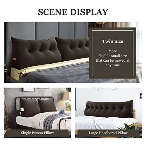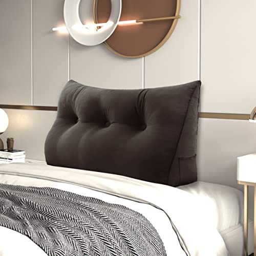 Johnear Cuscino a cuneo per la schiena in Velluto, Triangolare Cuscini da lettura,Testiera grande cuscino schienale per divano, Cuscino lombare (Marrone,100 x 20 x 50 cm