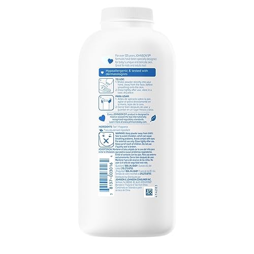 Cospargere Johnson Baby Powder sulle mani e lisciare sulla pelle del bambino.