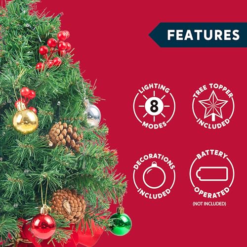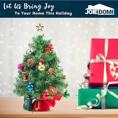 Joiedomi Albero di Natale da tavolo Prelit da 58,4 cm con luci multicolori, bacche di agrifoglio, pigne, topper per albero a stella e ornamenti per le migliori decorazioni natalizie